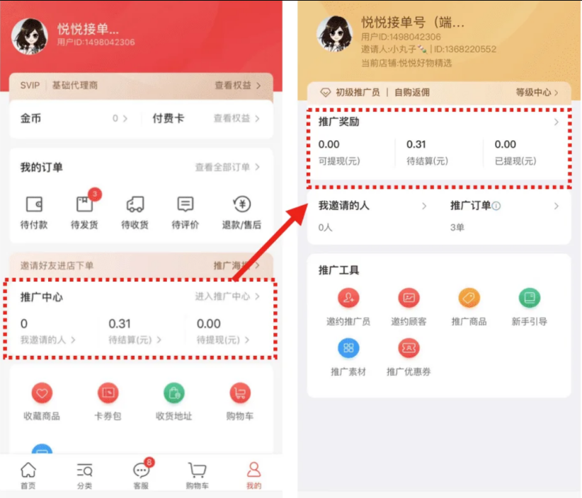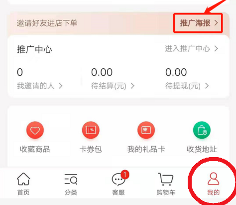 推廣員可在我的→推廣中心→點擊待結算金額進行提現。