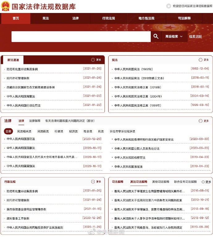 今天,國家法律法規數據庫正式開通。