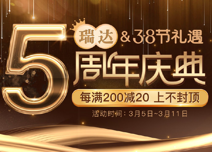 3月5日~3月11日 【天貓·瑞達成泰旗艦店】每滿200減20,上不封頂