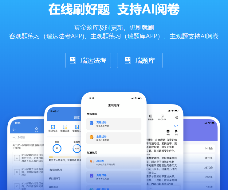最后,看完這篇文章的學員可以下載主觀題刷題神器“瑞題庫app”,讓你離成功更進一步!