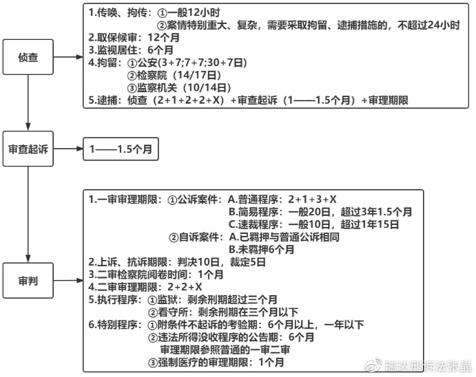 刑事訴訟中存在一些重要的期間,但是由于內(nèi)容比較瑣碎,大家不能很好的進(jìn)行回顧,下面這張圖片當(dāng)中以階段為標(biāo)準(zhǔn),寫明了刑訴中的重要時間。一來更方便記憶,二來對于各個階段也進(jìn)行了回憶。偵查階段主要是一些強(qiáng)制措施,審判階段主要是審理期限。