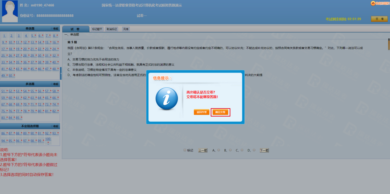 七、 點(diǎn)擊“交卷”并再次“確認(rèn)交卷”