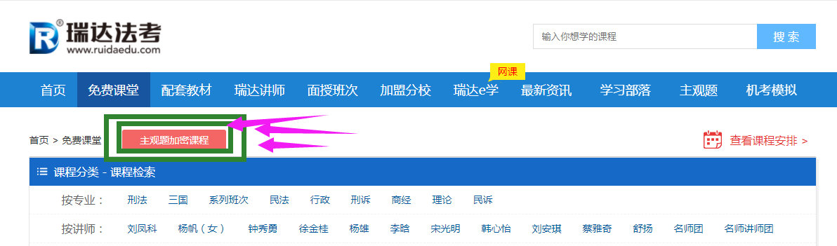 登錄瑞達官網→免費課程→主觀題加密課程→進入加密課程專題頁面
