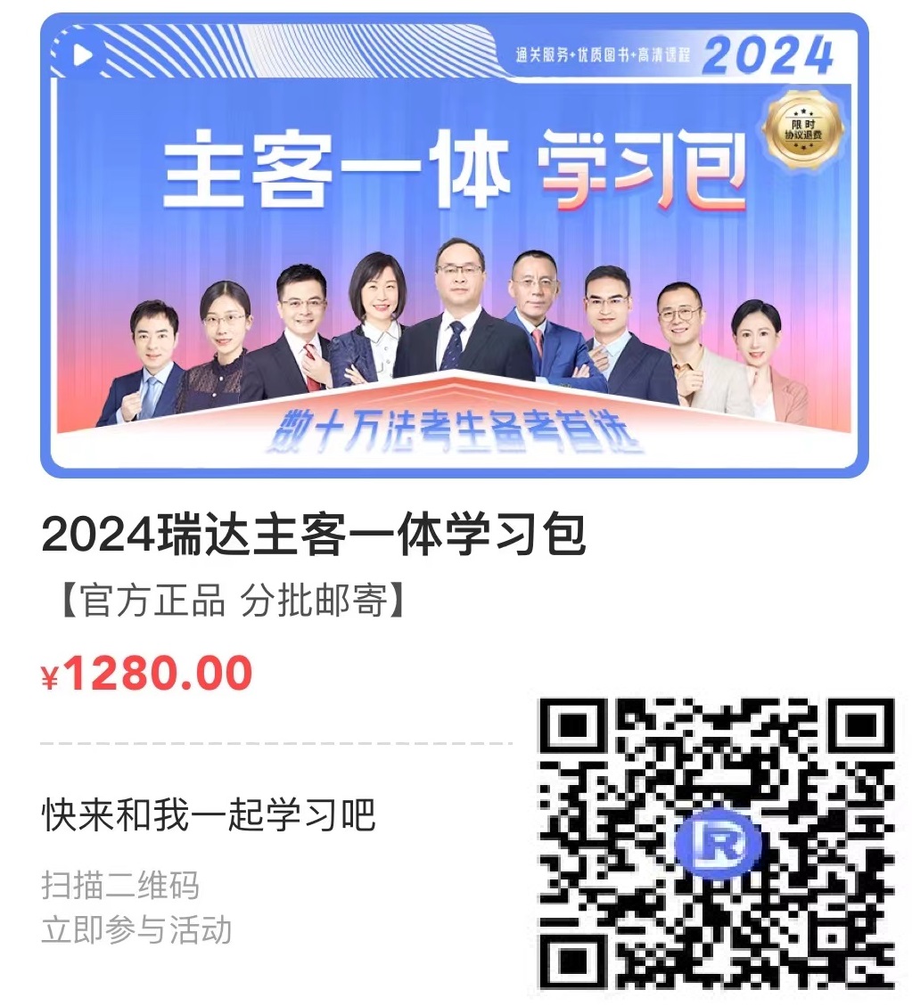 24學習包推出“限時不過退費”政策,現在購買24瑞達學習包,若客觀題考試未通過,將退還全部購買費用,且教材自留。