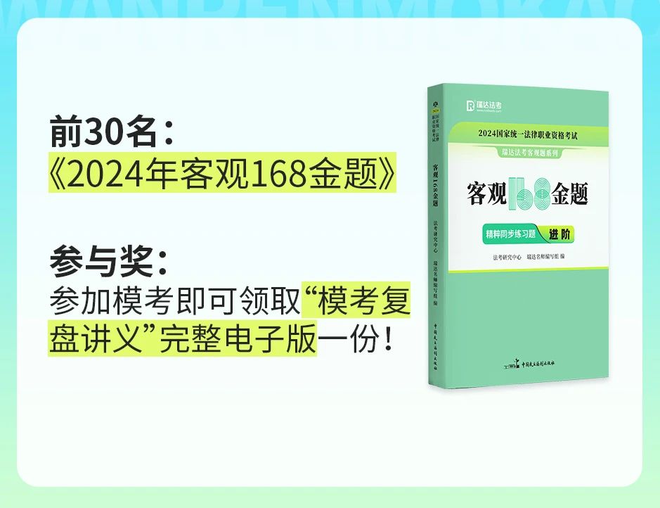 本次考試是瑞達在備考中后期,組織的一場大型模擬考試。嚴格按照法考考試時間、考試流程、答題系統,且配備了高質量模擬題。參與考試,排名得好禮!