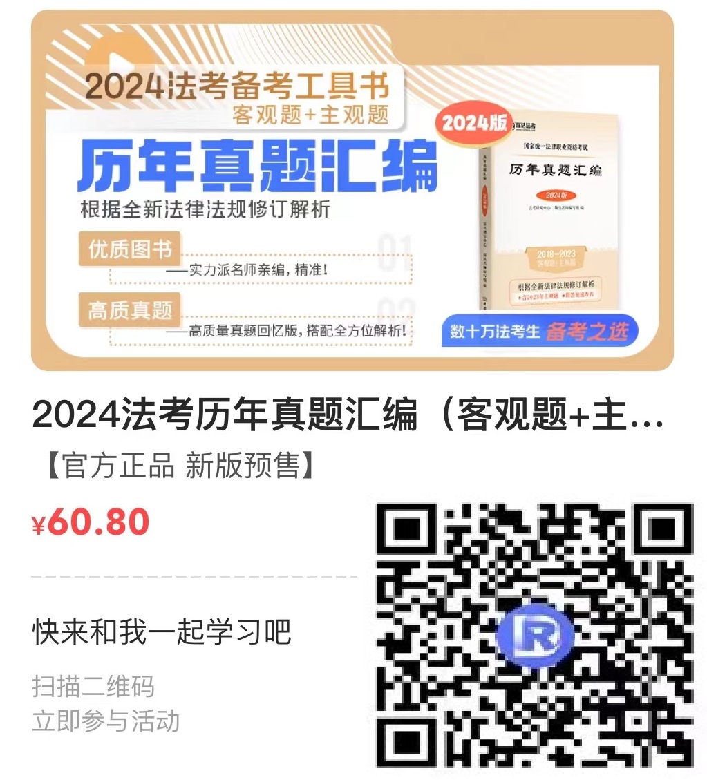 真金題階段已過,現在要刷就刷套卷!《歷年真題匯編》收錄了2018年至2023年共6年的法考客觀題真題與主觀題真題回憶版,絕對是考生們的刷題利器!