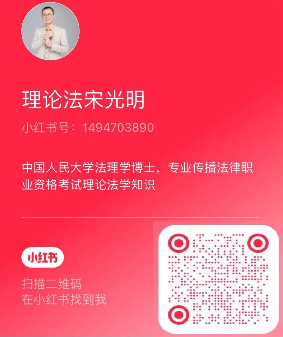 宋光明老師經常會在小紅書分享背誦的教材,如理論法背誦口訣、考前三十題、必背核心考點等內容,大家可以掃碼關注老師喲!