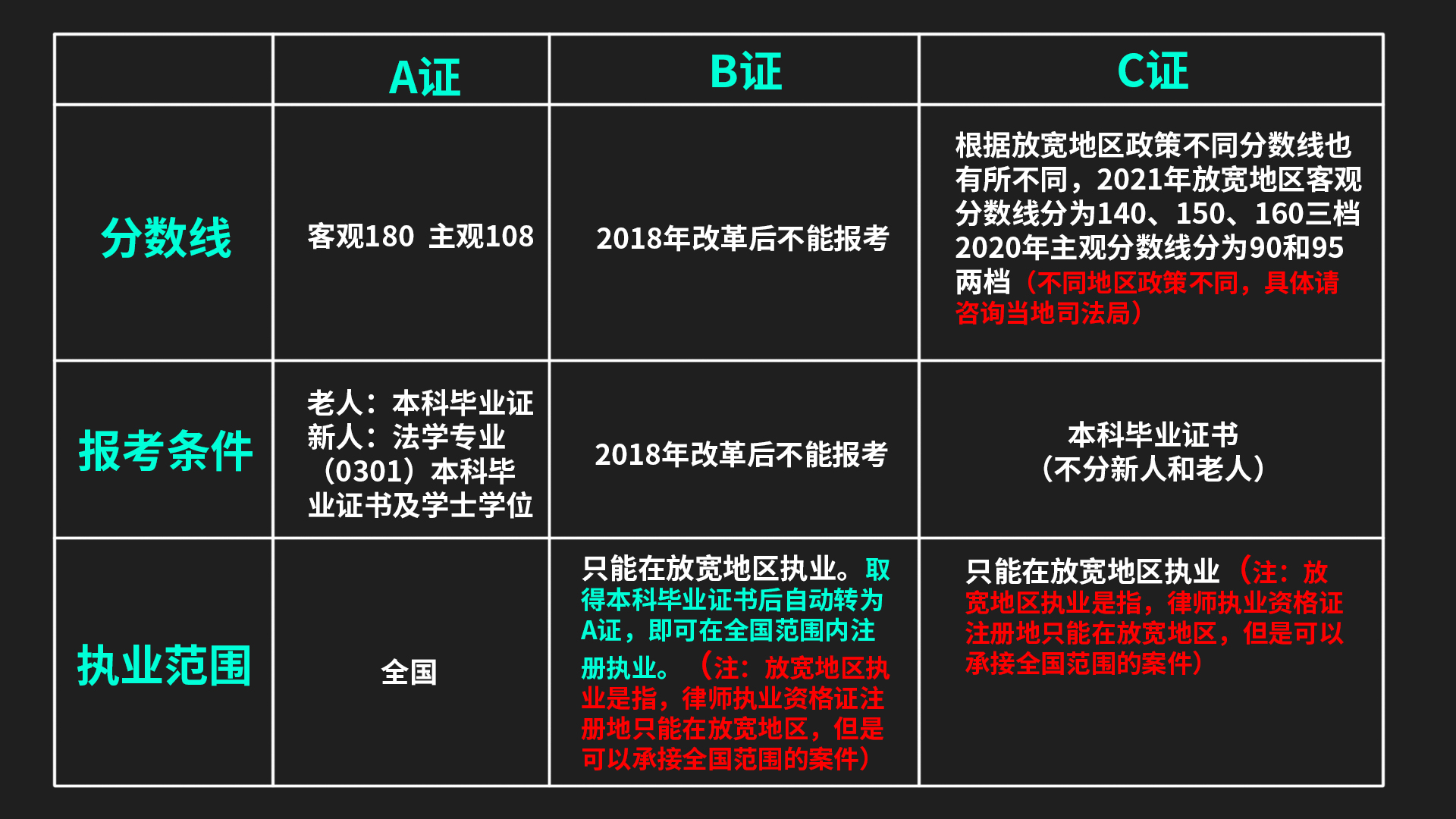 法考A證、B證、C證的區別,用下圖來為大家解答。