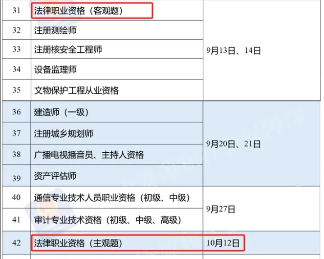 2021法考客觀題考試日期是9月11日,主觀題考試日期是10月17日。